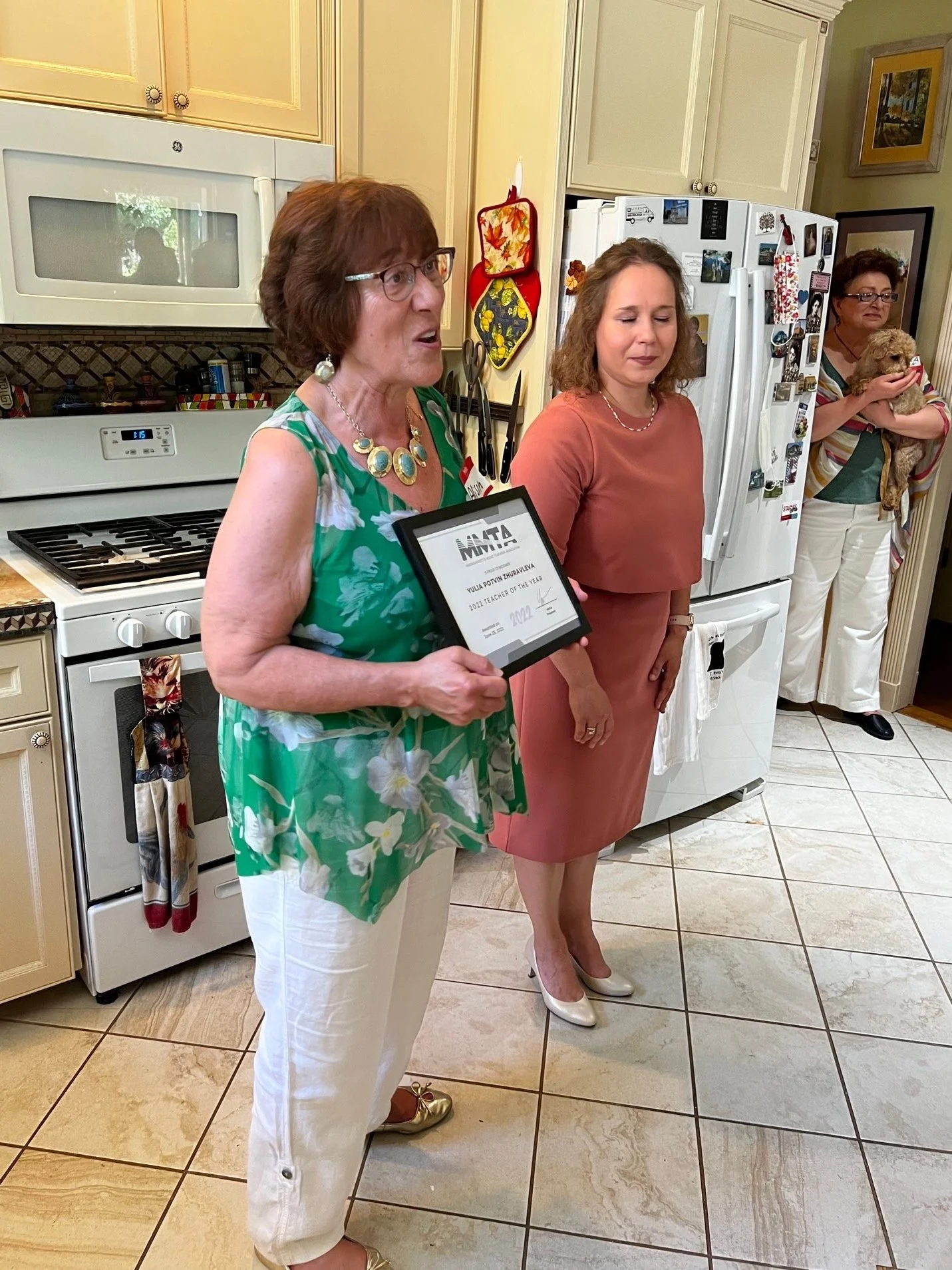 The stunning and welcoming yard and home of Vera Rubin was once again the setting for our Annual Social Event, honoring your 2022 Teacher of the Year, Yulia Potvin Zhuravleva. A picture speaks 1000 words, so here are some to show our members what a blast we had and how beautifully we honored Yulia! A performance by Yulia and Vera, sumptuous and delicious food, many colleagues, including lots of Longy students and recent graduates, speeches, accolades and fun all around! Congratulations to an ALMOST complete representation of MMTA Board members!!! Please consider attending this event in 2023!